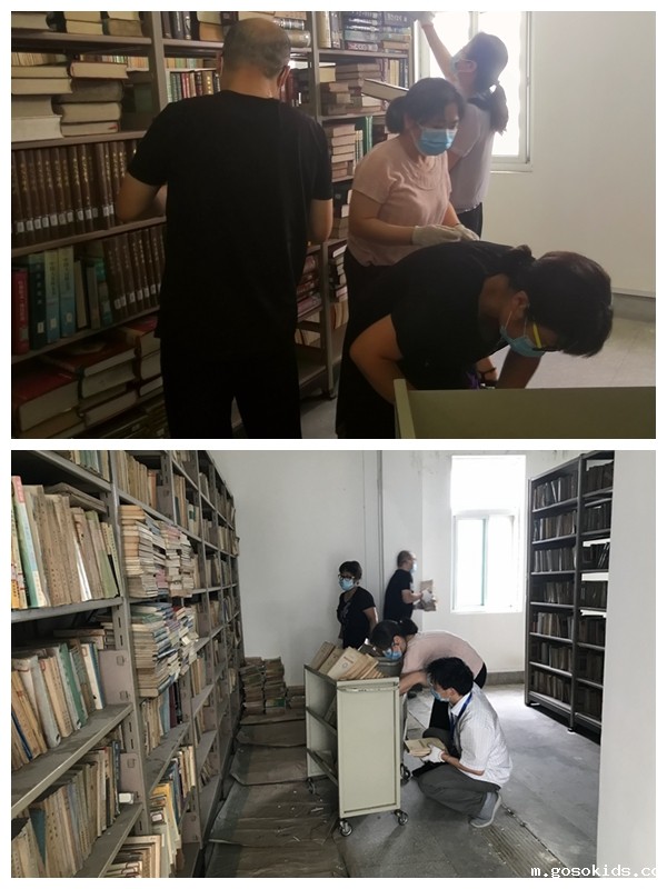 图书馆乃藏书之所,斯文在兹。会天大雨,屋漏,善本受潮。越旬日,雨止。众馆员勠力齐心,移书于高处。其间,皆汗流浃背。或笑曰:迨退休,恐无此机会矣。