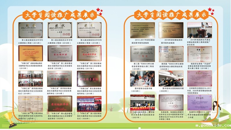 图书馆近年来在书香江淮“品读经典 对话信仰 弘扬社会主义核心价值观”安徽省高校互联网阅读活动、全国规范汉字书写大赛、安徽省高校“EBSCO杯”文献信息获取体验大赛、安徽省高职高专院校信息素养大赛、安徽省高校外研讯飞杯英语诵读大赛等活动中屡获佳绩,举办了馆配新书展、党史图书进校园、数字图书馆讲座、e会学宣传推广等一些列阅读推广活动,取得丰硕的成果,我院图书馆连续多年被评为安徽省高校图书馆先进集体。