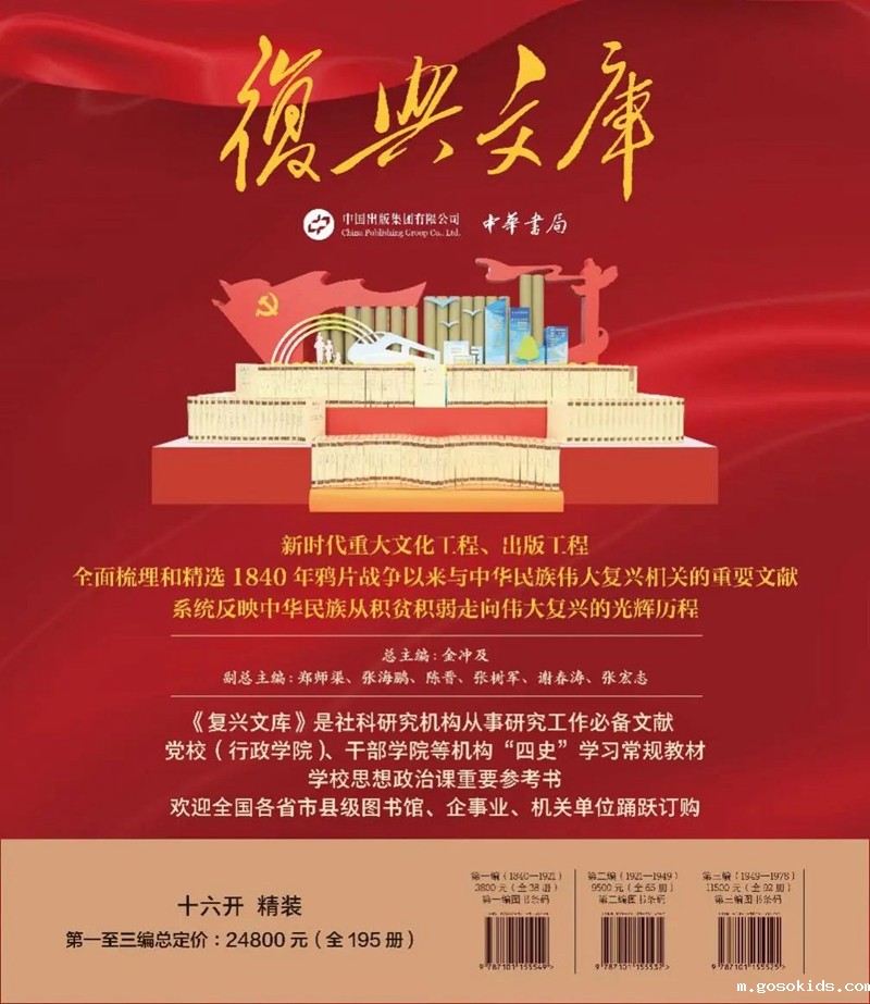 《复兴文库》精选1840年鸦片战争以来同中华民族伟大复兴相关的重要文献,按历史进程分为五编: