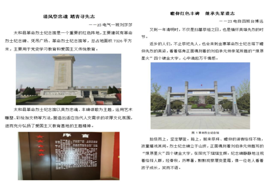 清明假期,我系学生充分利用当地红色资源,积极参加主题活动,有的同学自发前往附近的烈士纪念碑前,敬献花圈,默哀致敬;有的参观了革命纪念馆,重温红色记忆,坚定理想信念……,大家通过拍摄视频、图片或者攥写文稿等形式将自己的此行所感记录下来,并纷纷表示要将这种崇高的爱国精神转化为学习的动力,为实现中华民族的伟大复兴贡献自己的力量。